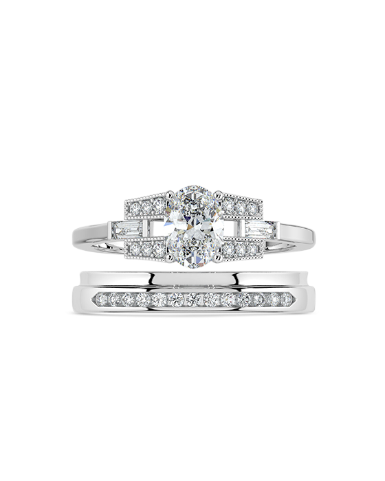 Oval cut diamond buckle ring in white gold
