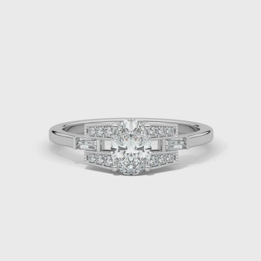 Oval cut buckle ring in white gold engagement ring v by laura vann