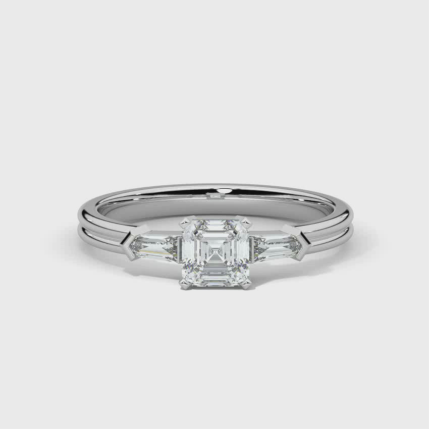 Illusion bullet & asscher cut diamond ring in platinum